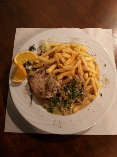 dazu Rahmchampignons, Pommes Frites